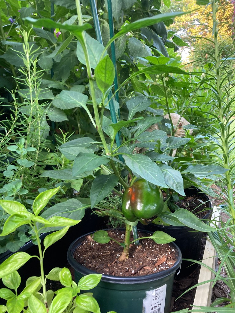 One of the pepper plants has coughed up its first progeny, with many more to follow as well I hope.