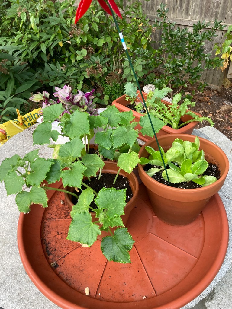 Someone, something, has neatly consumed those sunflower seeds and nary a flower has sprouted. In defiance I purchase two plants that are well underway as replacements.