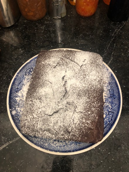 The pan was designed with a handle at the front, to help heft a heavy pan full, perhaps lifting it from the oven. Oven friendly, it has done its time roasting food in the oven too – there was even a time, decades ago now, when I still ate chicken and would occasionally roast a small one or parts in it, adorned by carrots, small potatoes, maybe green beans, onions and garlic. (I believe it housed fried chicken once or twice too, my grandmother’s recipe which involved flouring it in a paper bag. I was just discussing that recipe with my now vegan mother the other day.) The front handle popped off while scrubbing it about a year ago. It seems it was a warning sign over the bow, alas.