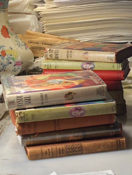 Books! Despite leaving a pile in New Jersey, many seem to have found their way back here too. As much as I have embraced reading electronically where I can (all new novels and what I can find on my list for 19th and early 20th century writers) I must say somehow a stack of books has built up next to the bed. They are mostly one off old novels and volumes of short stories from the 1910’s. If I find any new leads into interesting writers I will let you know. The most recent Rosa Mulholland book acquisitions reside there, while several earlier volumes remained in New Jersey. (Earlier posts on her novels can be found here, here and here.)