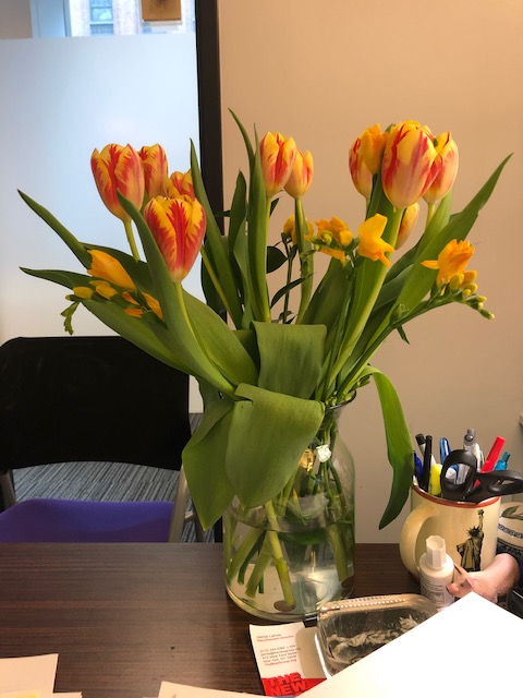 Flowers on my desk back in ’18. It had been my practice to buy new ones each Monday for the week.