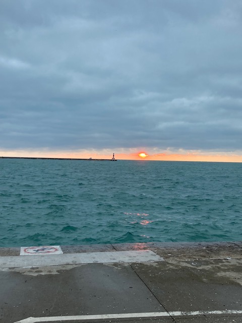 After some debate and planning I left the hotel just after sunrise for a run along the lake. I am used to cold runs along the water (and through the woods at mom’s), but even sporting my fleece tights and down liner the Chicago wind was a shock.