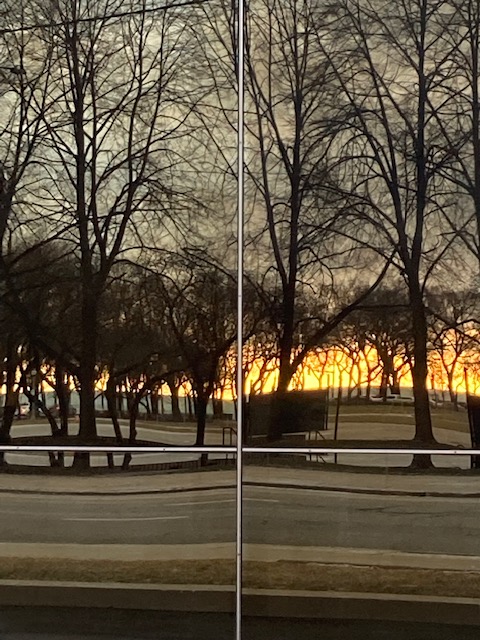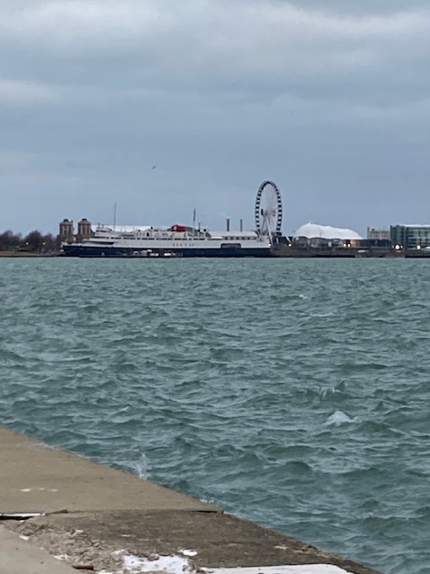 A not insubstantial amount of snow overnight sadly meant no run on morning two – which I regret because I wanted a better look at the Ferris Wheel, alas. However, I rose early, packed, crammed three meetings, breakfast, coffee and lunch into the first part of the day (Board member download from night before, former staffer and long ago colleague – no cabs around so all via Uber which was also an atrophied muscle) and visited with a colleague who had just arrived. I see Georgina so rarely in person these days that an in-person visit with her was almost as rare as seeing my Chicago folks.