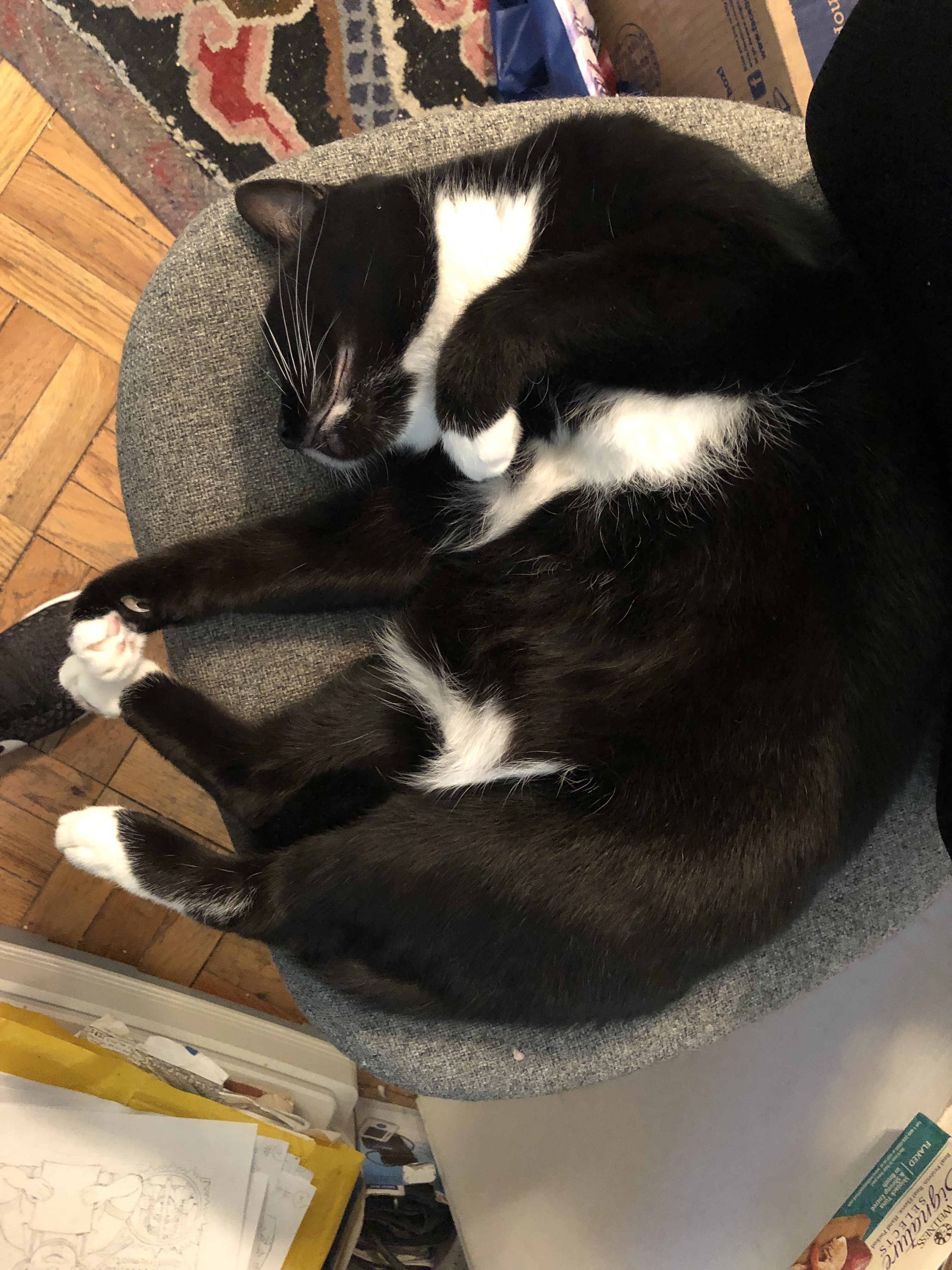 We spend so many hours on Zoom I do not often ask them to be on camera as I know it is an additional burden. People talk about how it is better for morale, but it is a string I don’t pull often. As I have written before, (some of my work from home posts can be found here, here and here for starters), unless it isn’t possible for some reason I do my best to be on camera with them despite whatever state me, the cats and the apartment are in. I feel like they should have the option of seeing me – for what that is worth.