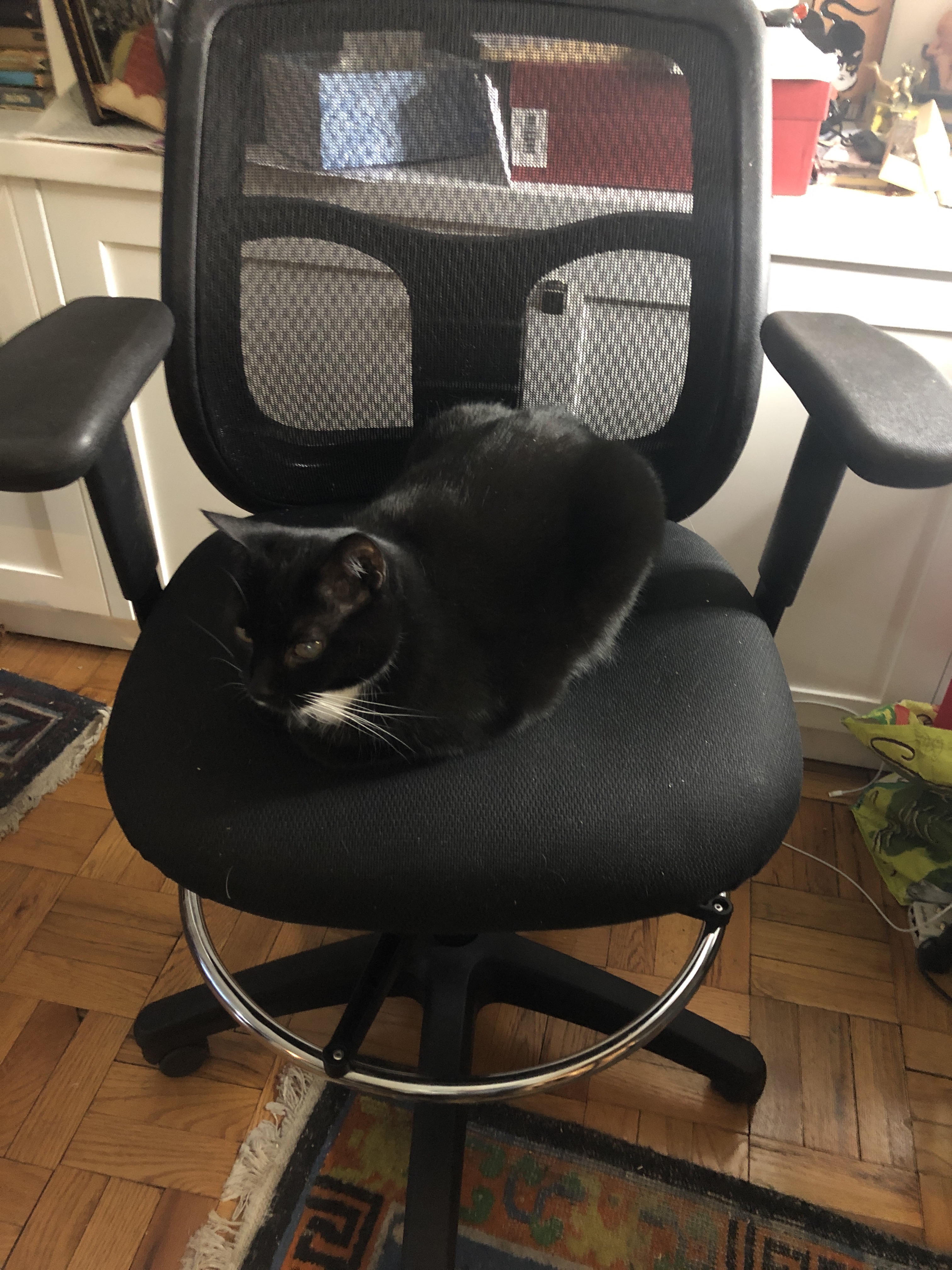 There’s always a certain amount of fighting over the new desk chair, regardless of whether I am in it or not…