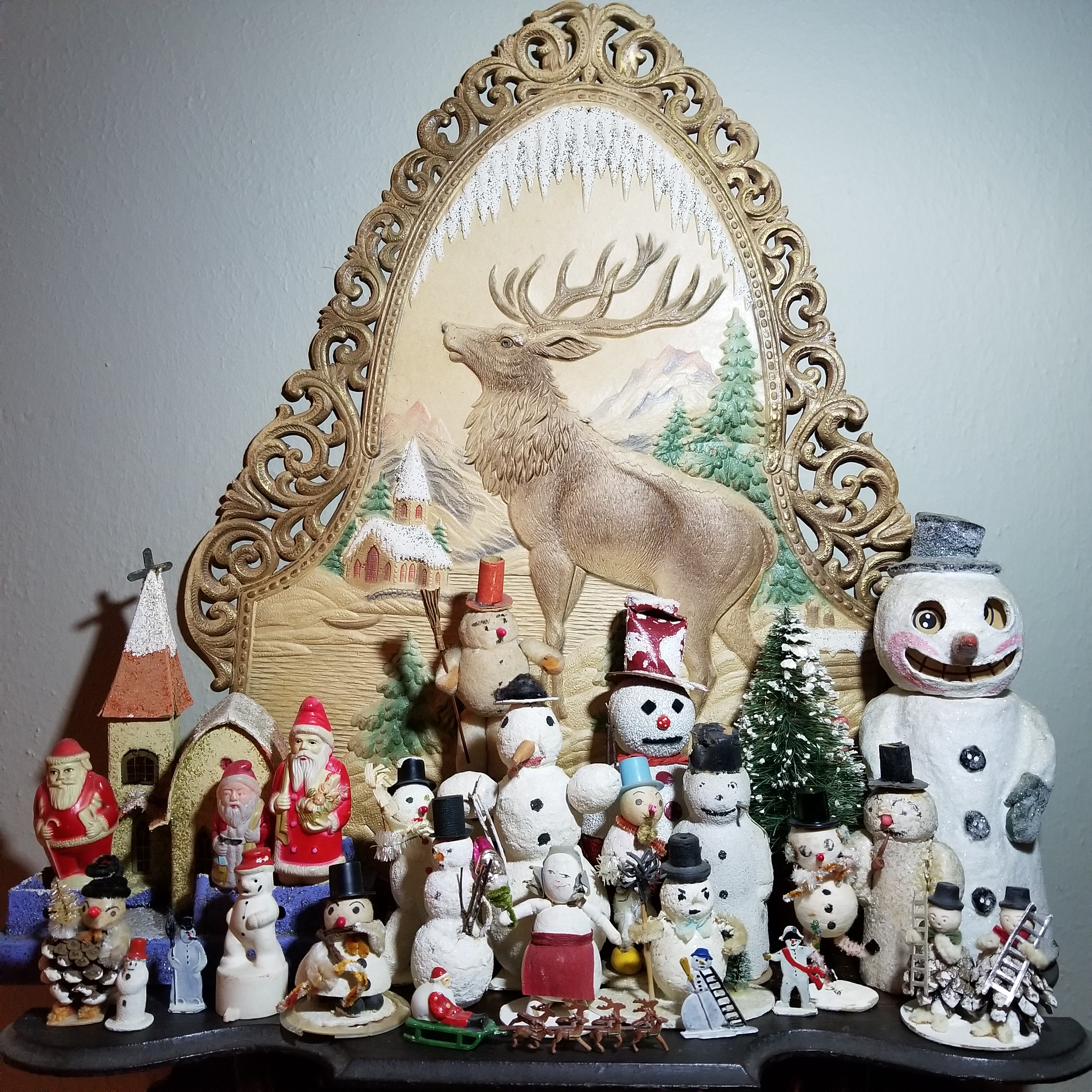 Above is another Boulanger from my collection utilizing only black and white. The post for this New Year’s greeting can be read here. Perhaps the same park scene but in full blown, snowy winter? No human sartorial splendor for these felines – they are just in their fur (hope it is warm enough) and only one bow between the three for decorative effect.