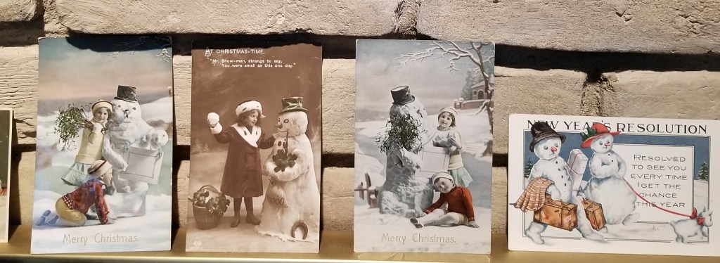 Meanwhile, today’s card is a Maurice Boulanger design, A Gusty corner in Catland. It was sent on March 25, 1904 from Newcastle-on-Tyne to Miss L. Poppleton, 19 Henry Street, Sheildfield. So I think it was a card appropriate to the weather there and then. The note on the back simply says, Dear Lizzie, Do not come tonight as I have to go straight home. come in on Wednesday if possible. Nellie XXXXX. Amazing to think of a time when there were enough mail deliveries in a day that you could send such a note with the expectation it would get there in time! It was the text of its day.
