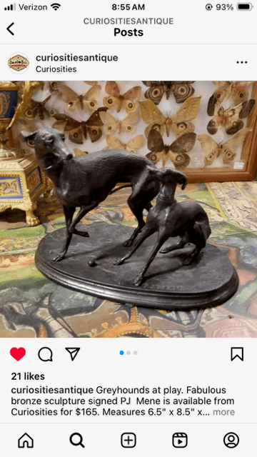 This quartet of kitties was out for a stroll in some sartorial splendor when the wind whipped up tossing hats and skirts astray! A monocle goes flying and we are moments from an accident as this puss also chases his hat while stepping carelessly off a curb. The gentlemen cats in question both sport top hats and while the little girl’s is well secured, moma kitty fears that her chapeau will take flight as well. Interesting that the two men cats have bushy and evident tails (Blackie just puffed his up this morning when a pile of papers fell under Kim’s desk – quite a look!) and the girls here keep their under their ample frocks.