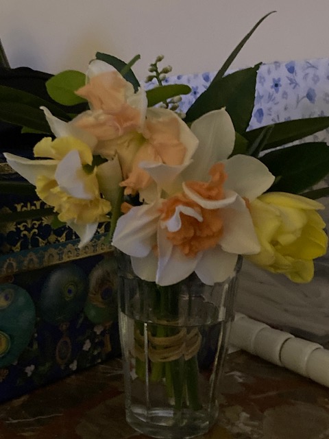 I am a big fan of vases filled with tulips, all colors and types. Trim the stems and add a couple of pennies – if in the sun or a warm spot they will force quickly. A cooler shaded spot to keep them longer.