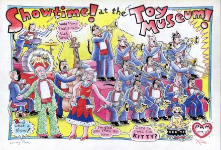In addition, I am lucky that I have Kim, the best husband ever, who always makes my birthday and Valentine’s Day very special – we spend a day (or more!) near my birthday devoted to digging around in antique toy stores and the sort of dusty haunts that result in the purchase of interesting photos and strange odd bits. And of course he tops himself each February with his Valentine’s Day drawing. (Actually this production starts in January annually as it has grown more elaborate. For anyone who is a new to Pictorama a few of these can be seen here, here, and this year’s here.)