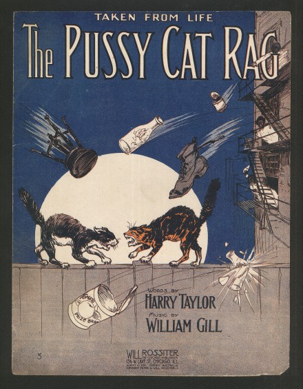 There is nary a snippet to be located about Julian and his cat act – not even the sort of listing in an old theatrical newspaper like sometimes turns up in my research. He has left no tracks. However, the Grand Theater has a traceable history. It was built in 1896 and closed its doors in 1954. The building remained standing if derelict until a fire in April of 1964 when it was then demolished. (I would share a photo of it, but none of the sites wish to let me today.)