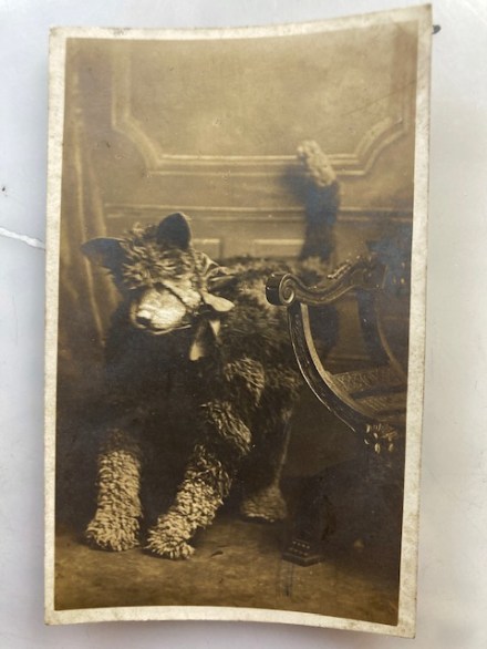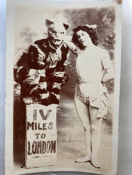 Like those two cards acquired from a single seller (those posts can be read here and here) today’s impersonator also hails from Great Britain. I don’t know if it is that animal impersonation as entertainment was better or more robust in England, but it did at a minimum produce more visual evidence which is jolly detritus for us to pick through a hundred or more years later.