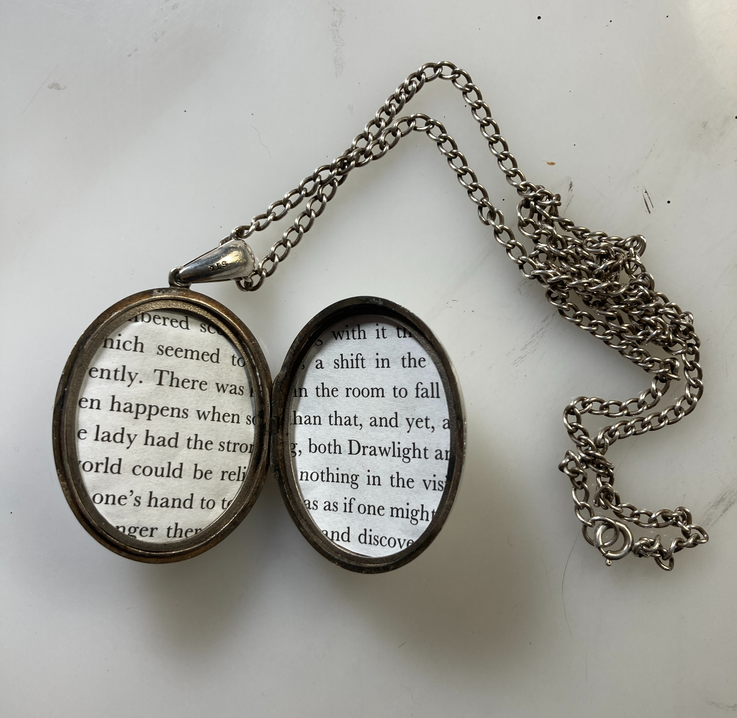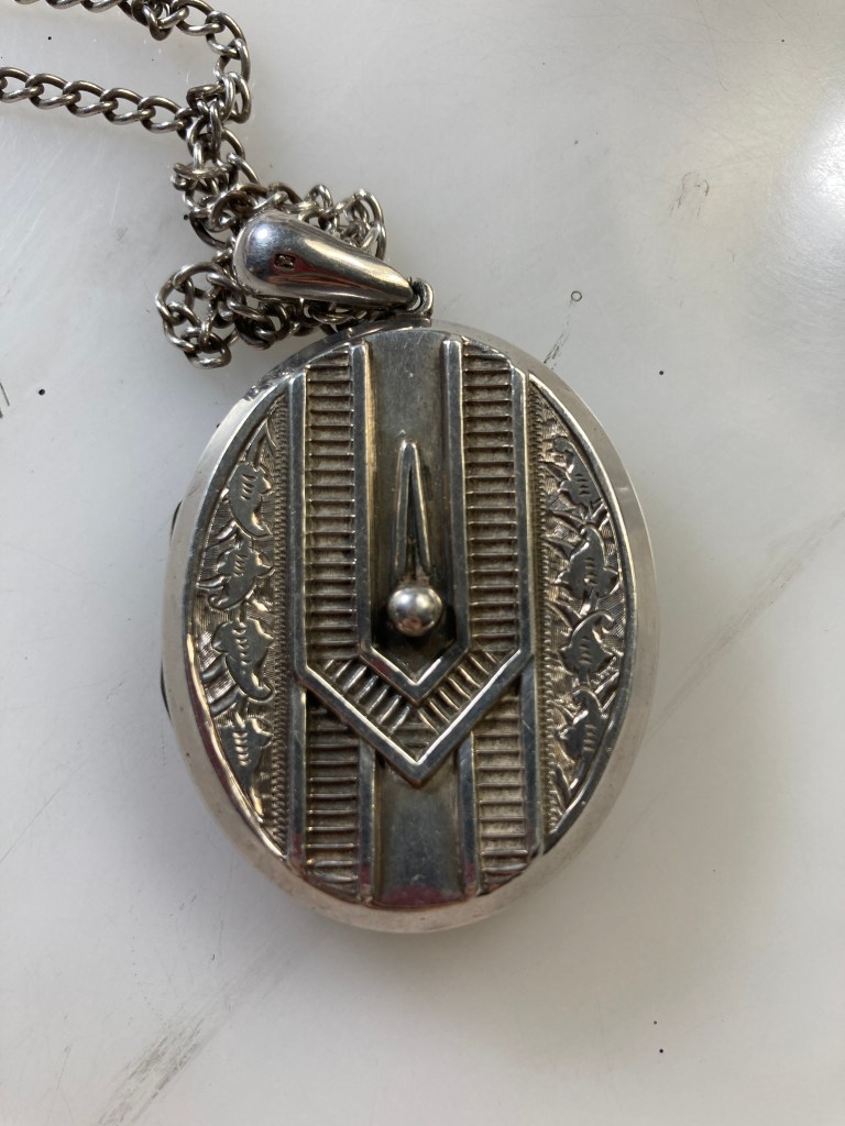 Mia points out that the Victorian design was deliberate and the symbols are ivy and belts. According to her listing the ivy is for friendship and connection while the belts represent eternity, loyalty, strength and protection. The idea that this was more of a locket of friendship than romance appealed to me in an odd way – and these days who doesn’t need strength and protection? Mia kindly included a chain to wear it on and the deal was done.