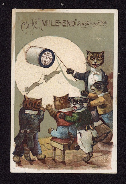 It is a bit larger than an average business card. Nothing is printed or written on the back. I can’t really imagine what purpose such a card might have served. And there is the obvious question of how is a woman’s hand reaching for a bird’s nest among flowers a manly pleasure? Am I missing some obvious or subtle Victorian symbolism? I love it, but it is a little hard to figure the guy who wanted to use this card.
