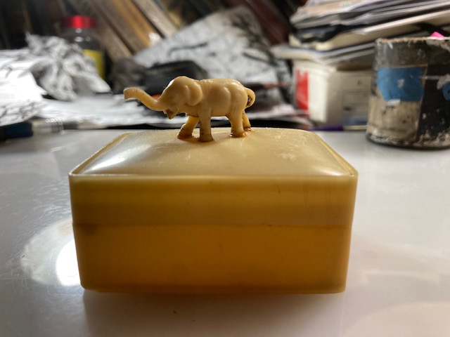 Mine has a patent mark (barely visible under a strong loupe) of 1931, the third of four patent marks on his jewelry. The site I found with much of this information gives tips for storing the pendant which I am grateful for (away from other pieces which could damage it), in an upright position if possible (have to think about that…) and of course away from temperature extremes. The chamber can be damaged it seems and air can get into it.