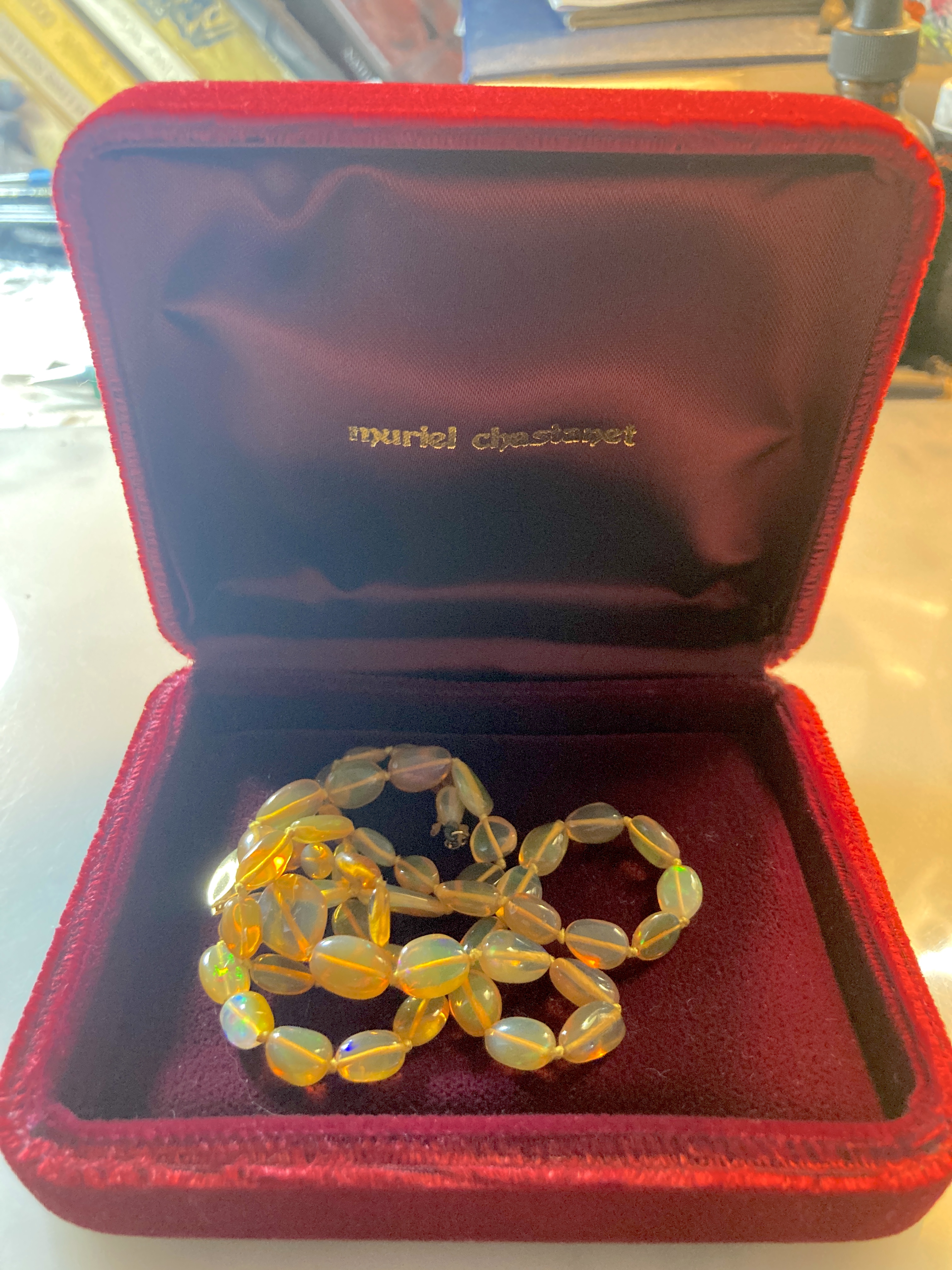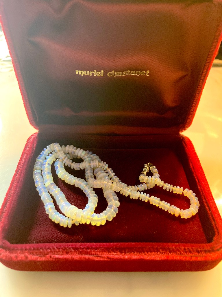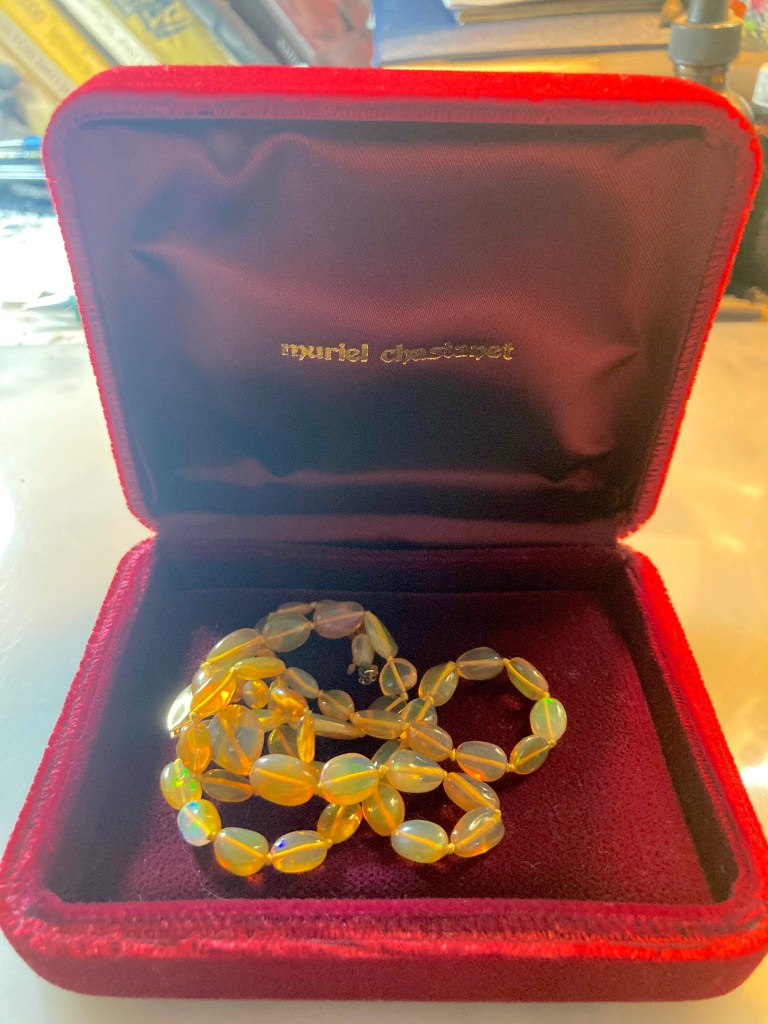 However, a few months later this necklace came up and from a seller I have never bought from or much seen in my feed before. (The seller can be found at http://trademarkantiques.com.) They were celebrating and promoting October’s birthstone, the opal. The pendant flashed before me in a video in a series of opal items and I snatched it up immediately.