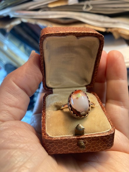 The charm of the boulder opal (for me) is that it was caught in the act of becoming an opal – forever frozen in the process of change. Wearing this ring so often I have had time to reflect on how much I like that aspect of it. Embracing growth and ongoing change is such an important aspect of life, I like reflecting on it when I look down at the ring and see it’s tiny flares of opal fire.